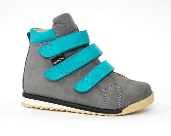 Zdrowe trzewiki dziecięce na trzy rzepy, ze stabilizacją pięty, na sportowej podeszwie, Ocieplenie z membraną Te-POR® szara, Tęgość F