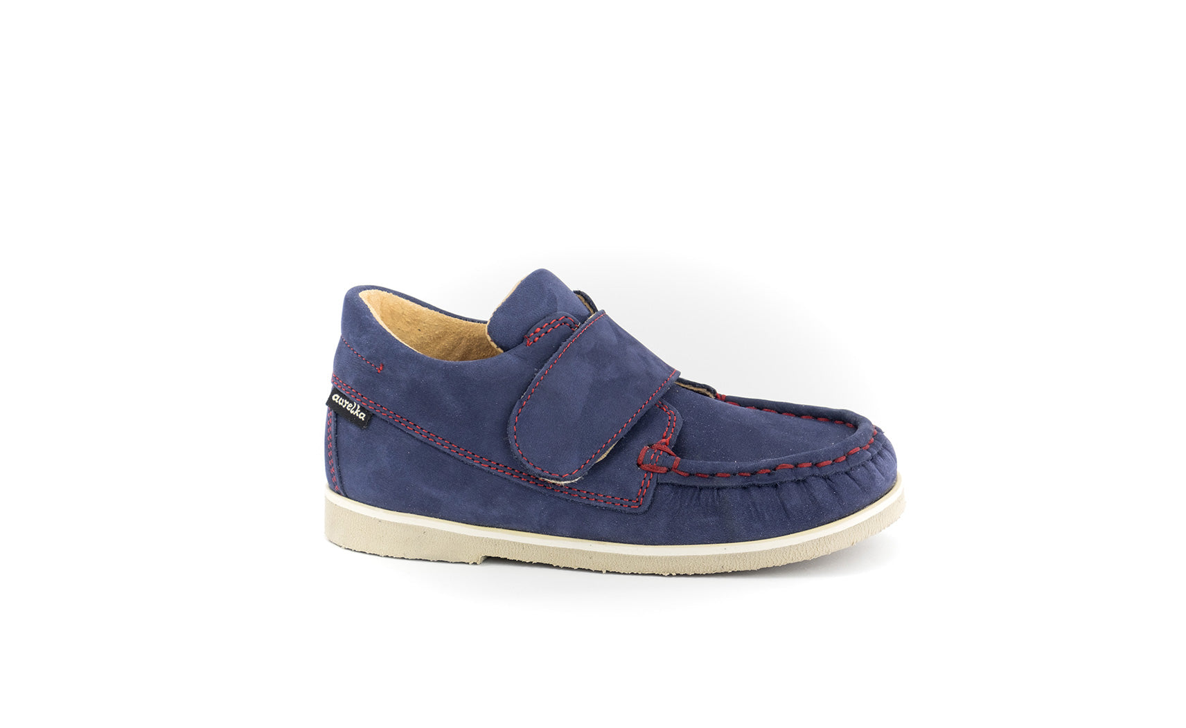 Mokasyn dziecięcy, na rzepy, z usztywnioną piętą, z beżową elastyczną podeszwą