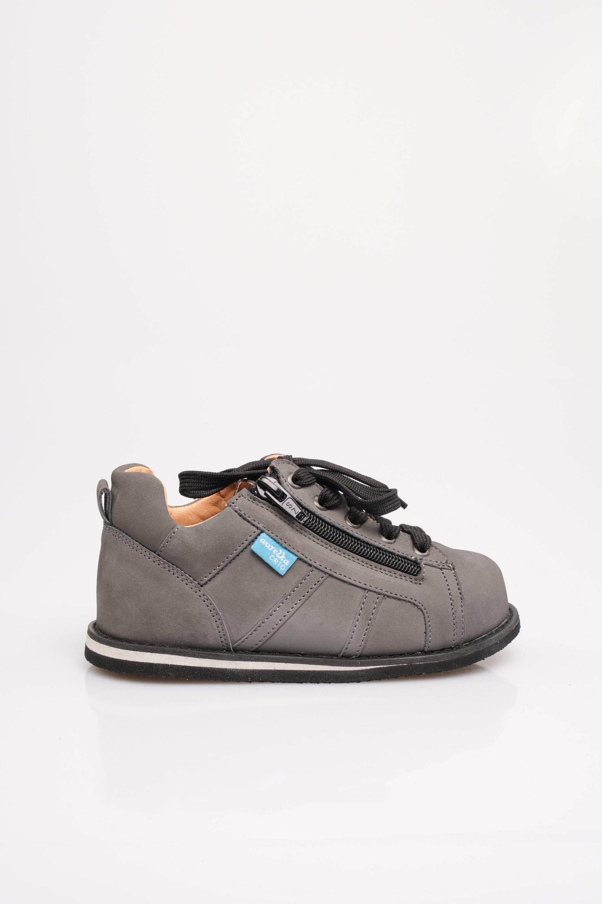 Sportowe półbuty z usztywnionym zapiętkiem. Odpowiednie do wkładek. Bardzo dobrze sprawdza się przy wysokim podbiciu, ale także przy szczupłych stopach. Dzięki sznurowaniu możemy regulować tęgość obuwia, a dwa suwaki ułatwiają zakładanie bucików. Obuwie jest także odpowiednie do wkładek.